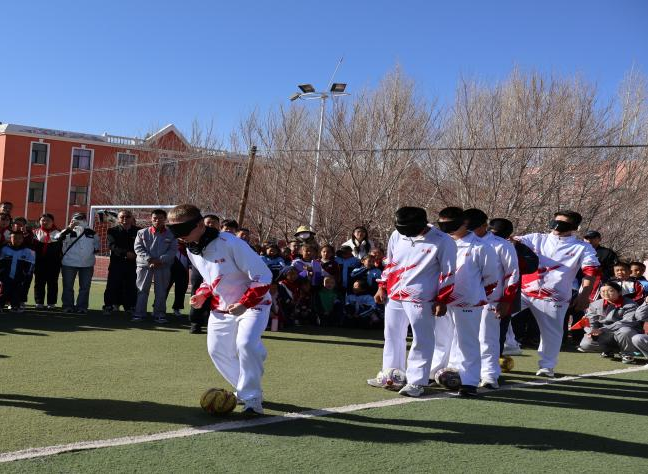 在盐池镇相关学校的残健共融体验现场,温馨的画面悄然上演:盲足少年们化身“小老师”,带领新疆中驼企业员工、在校学生体验盲人足球,手把手指导大家学习听声辨位、带球、射门等技巧。当参与者蒙起双眼,在黑暗中摸索前行、聆听指令,才真切体会到视障运动员在训练和比赛中的艰辛与不易,也更深刻地感受到盲足少年们不向命运低头、奋力拼搏的精神力量。绿茵场上,欢声笑语不断,彼此的鼓励、默契的配合,绘就出残健相融、守望相助的美好画卷,让“平等、包容、互助”的助残理念深入人心。