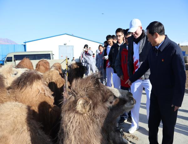 4月3日,盲足少年一行走进新疆中驼厂区及骆驼养殖基地,在工作人员的耐心引导下,用手触摸骆驼、了解骆驼养殖过程和企业生产流程。新奇的体验、温柔的陪伴,让盲足少年们在触摸中感受世界,在互动中收获快乐,为此次公益行程增添了别样的温暖色彩,也让爱心企业与残疾人群体的联结更加紧密。