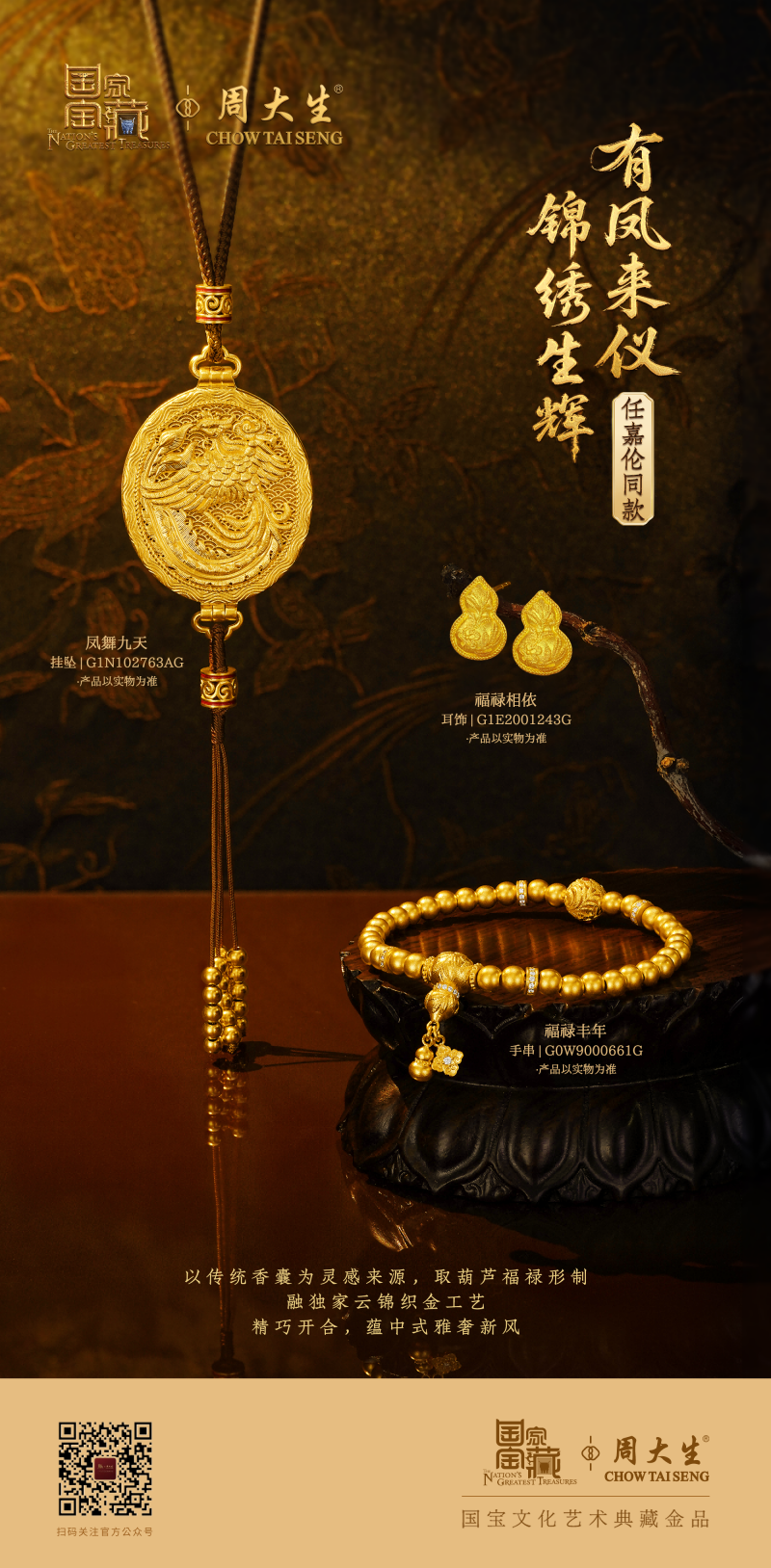 周大生始终秉持“可佩戴的国宝,可传世的家藏”的产品理念,以黄金为载体、以国宝文化为内核,让深藏于博物馆的千年文脉与国宝技艺,真正走进当代生活、走进万千家庭。